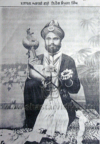 Then in time, some selfish men, for the sake of filling their bellies, forsook the 'Sanatani' (traditional)Singhs (i.e., their Gurus' principles), and in accordance with their own intellect began to self-manufacture the [Sikh] faith. The ordinary people, thinking that they represent the Guru's faith, joined them. Not considering the past or future, not looking at past historical books. Then, when it reached such a state that for us [eating of] cow and goat was considered equal; that we were not Hindus; on hearing the Guru-like 'devtas' (Hindu gods/goddesses) being slandered, this dog of the Guru (i.e., loyal disciple) became dejected from the world. I desired that I sitting in some mountain cave eating the fruit [there in the wilds] I will subsist. To endure such anti-Dharma is a miserable plight." (Nihang Sanpuran Singh, Suraj Vansiya Khalsa Panth, (Siri Chand Press, n.d.), Introduction)