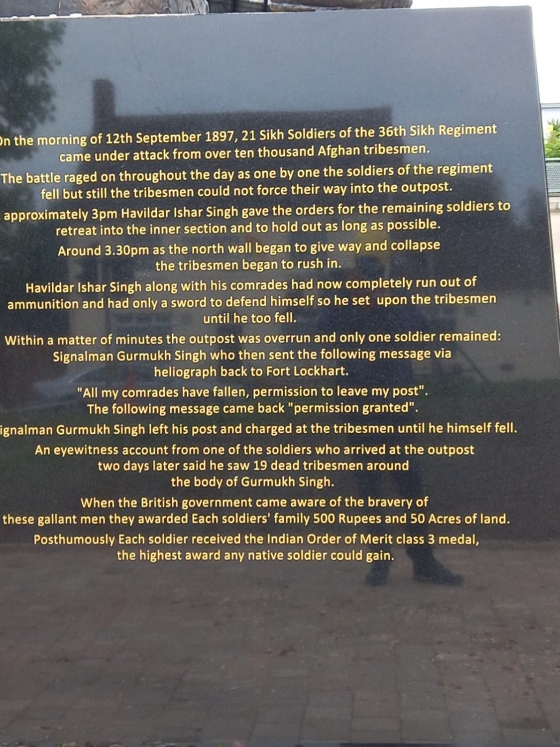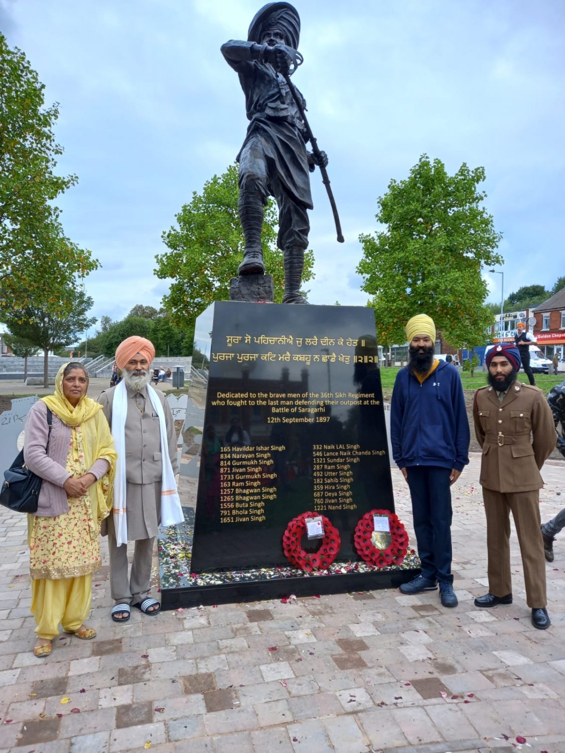 Waheguru Ji Ka Khalsa Waheguru Ji Ki Fateh and to all the sadh sangat on this platform here Sat Sri Akaal. Today was the day when the statue of Halvidar Ishar Singh was publicly unveiled in front of dozens of armed forces, police force, and including the British Royal Air Force at Wednesfield Guru Nanak Gurdwara situated in England soil. Here are a few pictures/screenshots of the congregation that attended this auspicious smagam. Over 100 years ago, 21/22 Sikh soldiers had safeguarded the Saragarhi station overcoming countless Afghani forces.