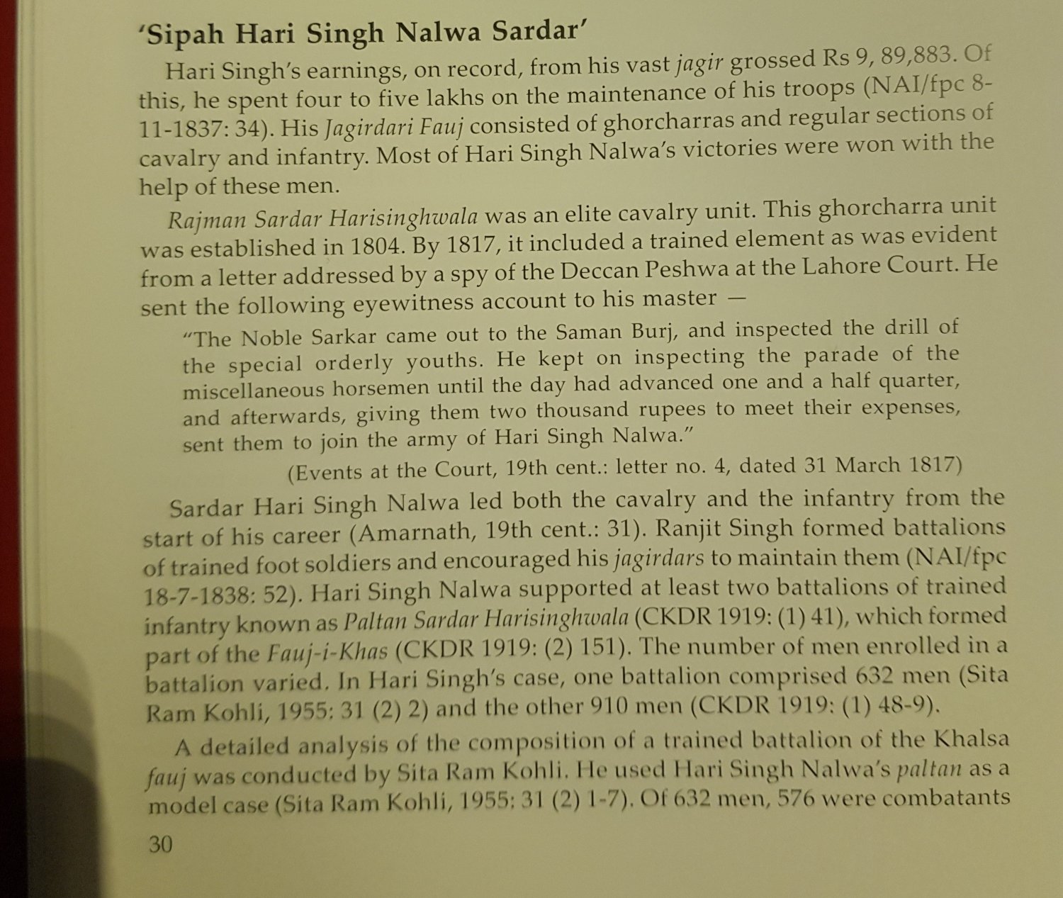 “Stay Quiet, Hari Singh Is Coming” by Kamalpreet Singh Gill - Apr 30, 2018, 6:22 pm Hari Singh Nalwa Snapshot 30 April is the death anniversary of the legendary Sikh general, Hari Singh Nalwa. Here is a tribute to the warrior who earned the title, ‘Terror of the Afghans’. Generations of Pakistanis recall how, even to this day, in the troubled north western tribal belt bordering Afghanistan, mothers often put young children to sleep with the Pashto words “Chup sha, Hari Singh raghlay”. (stay quiet, Hari Singh is coming) Hari Singh Nalwa was the general of the Sikh empire of Ranjit Singh who, to a large extent, was responsible for shaping the political boundaries of modern South Asia as we know them today. During the turbulent late eighteenth and early nineteenth century, when the East India Company was fast gobbling up territories of the Indian sub-continent from the east and the south, Hari Singh Nalwa expanded the empire of Ranjit Singh further to the west and to the north. He brought Kashmir and Multan under the Lahore durbar while also extending Sikh rule beyond the Indus, bringing the Sikhs face to face with their old enemies - the Afghan kingdom of the Durranis - with whom they had been constantly at war during the eighteenth century when the notorious Ahmad Shah Abdali had ravaged the Punjab with his plundering raids. Such was the destruction caused by Ahmad Shah in the Punjab that it gave birth to a common idiom popular in Punjab even today : Khaada peeta laahey da Baaki Ahmed Shahey da (to you belongs only that which you need to fill your stomach Rest all is the property of Ahmed Shah) This time however the shoe was on the other foot. Having consolidated their hold over the Punjab through the eighteenth century, the Sikhs were after the famed Afghan capitals of Peshawar, and eventually Kabul. Peshawar was the winter capital of the Afghan kingdom of Durranis. More than just an administrative centre, Peshawar had also been the cultural capital of the Pashtuns throughout history – from the Gandharan civilisation of 5th century BC to the Kushan empire of Kanishka of the 1st century CE down to the Mughals in the 16th century, Peshawar served as the nerve centre of Afghan life and culture for millennia. In the 18th century, to imagine an Afghan kingdom without Peshawar was like imagining a Bengal without Kolkata, a Maratha empire without Pune, a Punjab without Lahore. Under orders from Ranjit Singh, Hari Singh Nalwa wrested Peshawar from the Afghans. Were it not for Hari Singh, Peshawar might well have remained with the Durranis, and the British, having annexed Punjab and Sindh by 1849, would have remained content drawing the boundaries of their empire at Rawalpindi itself. The Pakistan of today would not have inherited Peshawar and most of its north-western tribal areas. Rise Through The Ranks and the Capture of Peshawar Born in 1791 in the city of Gujranwala (now in Pakistan) Hari Singh arrived at the court of Maharaja Ranjit Singh of Lahore as a young boy of 14. He quickly rose through the ranks to become the commander-in-chief of the armies of the Sikh empire by distinguishing himself in a series of battles, quickly fought, and decisively won. With each victory, the Sikhs progressively moved westwards, alarming the Afghans and worrying the British. The Afghans often sought British help during these battles but the latter calculated that with the Sikhs led by Hari Singh Nalwa and Ranjit Singh, the Afghans didn’t stand much a chance and preferred to keep their distance from the wars between Sikhs and Afghans, waiting for a more opportune moment to intervene. In 1827, Attock on the north-western edge of the Punjab was captured from the Afghans after a bloody battle and Hari Singh Nalwa soon found himself at the ramparts of the great city of Peshawar which was in 1834 defended by Dost Mohammed Khan, the Emir (king) of Afghanistan. The actual conquest of Peshawar however turned out to be an anti-climax. No great battle was to be fought to conquer the great city. Such was the reputation of Hari Singh Nalwa by this time that the Afghan garrison gave up after a token resistance and the Sikhs entered the famed Bala Hissar fort of Peshawar without a fight. The Peshawar fort was renamed by the Sikhs and called Sumer Garh, after the Sumer mountain in the Himalayas that Guru Nanak is believed to have visited during his travels. Hari Singh Nalwa had by now earned the sobriquet of ‘ The Terror of the Afghans’. The Battle of Jamrud Under Ranjit Singh, Sikhs expanded rapidly beyond the Punjab to include Kashmir in the north and Multan in the south to their dominions. However it was Kabul that Ranjit Singh desired above all and he trusted Hari Singh Nalwa to deliver it to him. With the fall of Peshawar, Sikhs moved further west to occupy the strategic town of Jamrud overlooking the historic Khyber Pass – considered the gateway to India by invaders from Central Asia throughout history. Following Dussehra celebrations in Amritsar in October 1936, Hari Singh, accompanied by prince Nau Nihal Singh – Ranjit Singh’s grandson - quickly subdued the fiercely independent tribals of the area who were known to stubbornly resist all forms of authority. Jamrud too fell quickly sending shockwaves through South Asia, and leaving the Khyber Pass within a stone’s throw reach of the Sikhs. Right across the Khyber Pass lay the bustling Afghan city and commercial centre of Jalalabad, with Kabul another 150 kms to the west. Dost Mohammed knew that once the Sikhs crossed the Khyber Pass and captured Jalalabad, Kabul would fall within a matter of days. To save his empire, he gathered his wearied forces one last time and waited nervously for the right moment. Meanwhile in Lahore, preparations were in full swing for the wedding of Kunwar Nau Nihal Singh. Sir Henry Fane, Commander-in-Chief of the British Armies in India was invited as a special guest for the wedding at Lahore. On 22 March 1937 Sir 