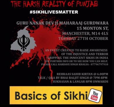 Baljit Singh "Sangat ji with Guru Sahib Ji's kirpa I will be in Manchester on Tuesday 27th October at 7pm talking about the heart aching events that are taking place at present. Again and again Guru Granth Sahib Ji Patshah is being disrespected, we must never forget Guru Sahib ji is All Powerful and is sacrificing themselves again & again, lets do ardaas so that we can understand on a deeper level what is going on." https://m.facebook.com/photo.php?fbid=742227209254377&id=100004013141283&set=a.103656133111491.5832.100004013141283